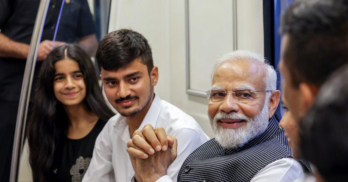 Modi boarded the train at Lok Kalyan Marg metro station and deboarded at Vishwavidyalaya metro station on the Yellow Line.