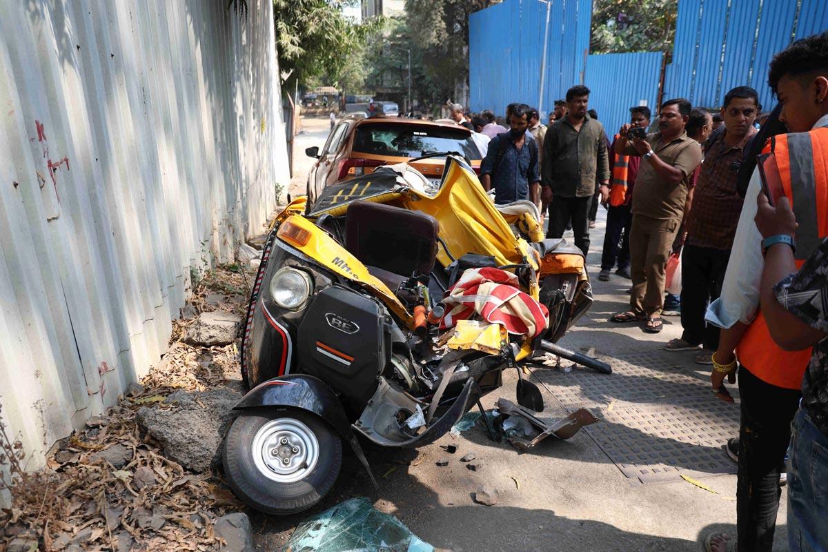 - The parapet segment fell on a passing autorickshaw and a Skoda car, completely crushing the rickshaw.