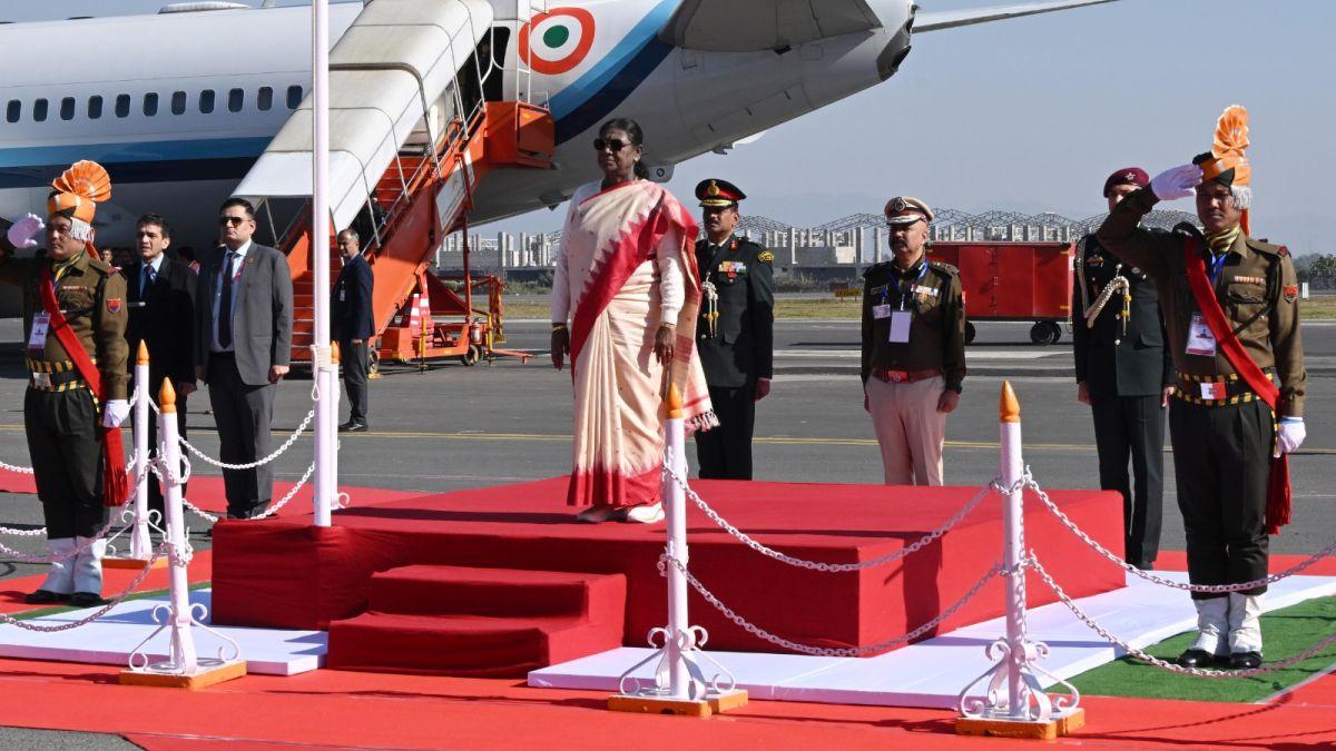 "The President arrived at Imphal Airport aboard an Indian Air Force flight. She reached Lok Bhavan, around 7 km away, by road," an official said, adding the route was secured by armed forces who lined up the roads.