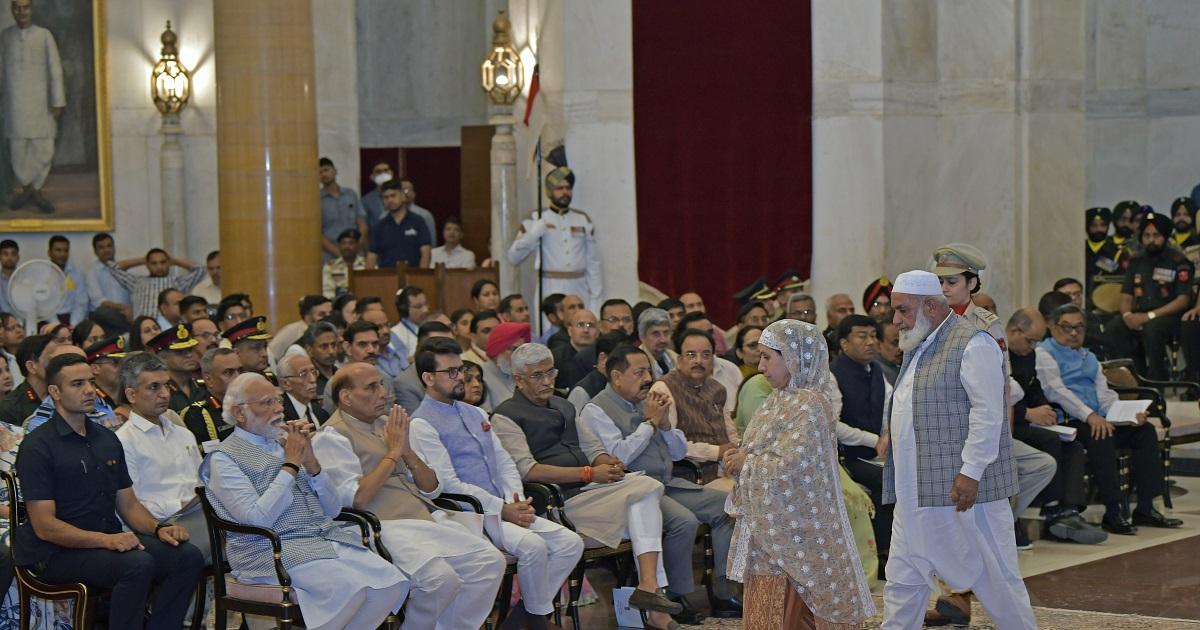 "President Droupadi Murmu presents Kirti Chakra to Shri Shrawan Kashyap, Head Constable, Chhattisgarh (Posthumous). He displayed extraordinary courage and made supreme sacrifice for the nation while fighting and killing the Naxals during an operation in Bijapur, Chhattisgarh," the Rashtrapati Bhavan tweeted.