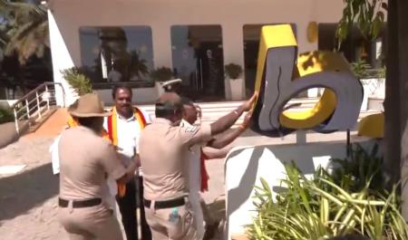 The Ministry of Home Affairs' Rajbhasha Samiti had organised a 'Hindi Promotion Meeting' at the hotel, attended by six Members of Parliament, when members of the pro-Kannada outfit barged in on Thursday, according to sources.