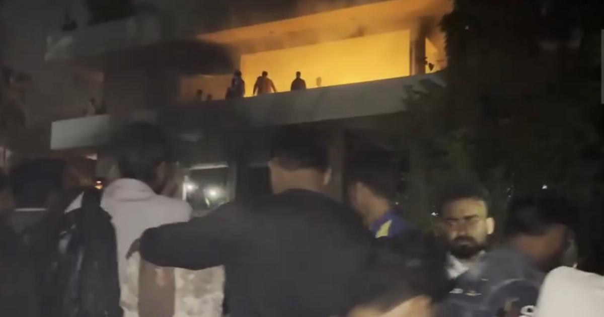 A large group of protesters on Wednesday vandalised and set on fire Bangladesh founder Sheikh Mujibur Rahman's residence in Dhaka during a live online address of his daughter and deposed prime minister Sheikh Hasina.