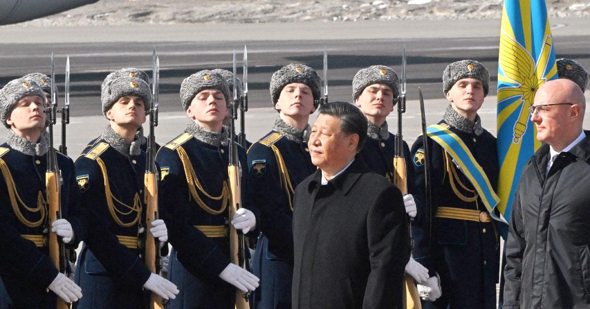 IMAGE: Xi Jinping, general secretary of the Communist party of China and the People's Republic of China's president, was received at Moscow airport by Russian Deputy Prime Minister Dmitry Chernyshenko and not Russian President Vladmir Putin as expected. Photograph: Kommersant Photo/Anatoliy Zhdanov via Reuters