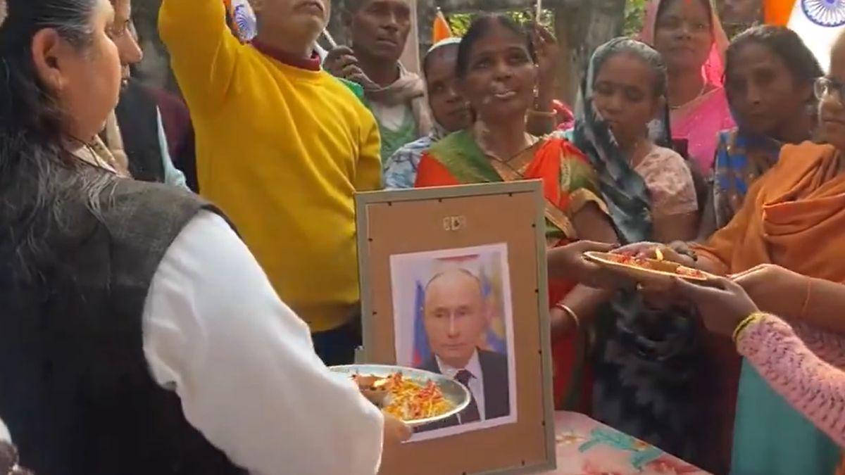 Supporters performed aarti before Putin's photograph and played traditional drums, describing the visit as the arrival of an honoured guest.
