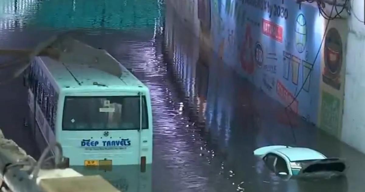 A car and a bus were seen almost completely submerged at an inundated underpass in the Delhi Cantonment area. Videos circulating on social media showed similar scenes, purportedly from the Minto Road area.