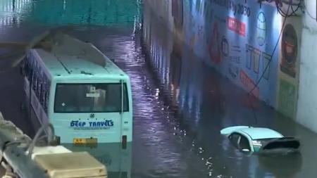 A car and a bus were seen almost completely submerged at an inundated underpass in the Delhi Cantonment area. Videos circulating on social media showed similar scenes, purportedly from the Minto Road area.