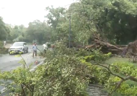 Thunderstorm accompanied by heavy rain battered Delhi overnight, disrupting flight operations, uprooting trees and electricity poles, and causing waterlogging in several areas while bringing relief from stifling heat.