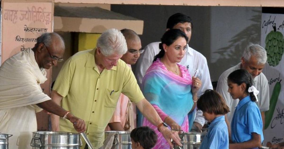 Clinton and his delegation, who arrived in Jaipur on Monday night, also served food to the school children.