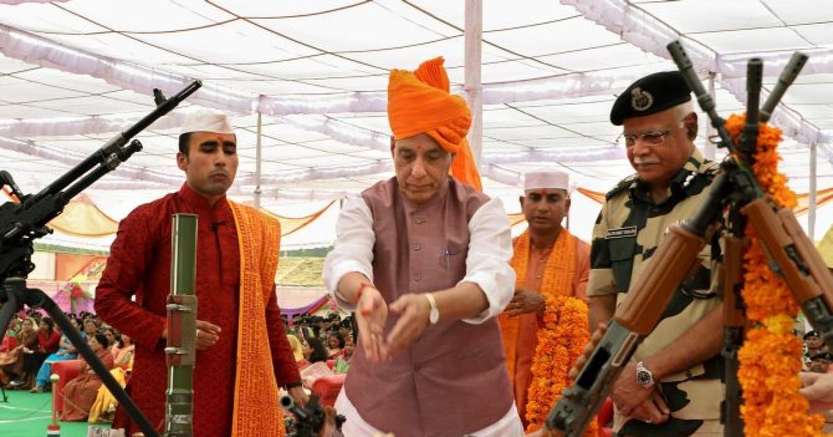 Rajnath celebrates Dussehra with BSF jawans, performs 'shastra puja'