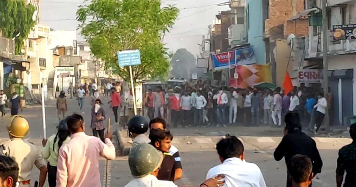 IMAGE: A communal clash broke out during a Ram Navami procession, in Himmatnagar on April 10, 2022. Photograph: ANI Photo