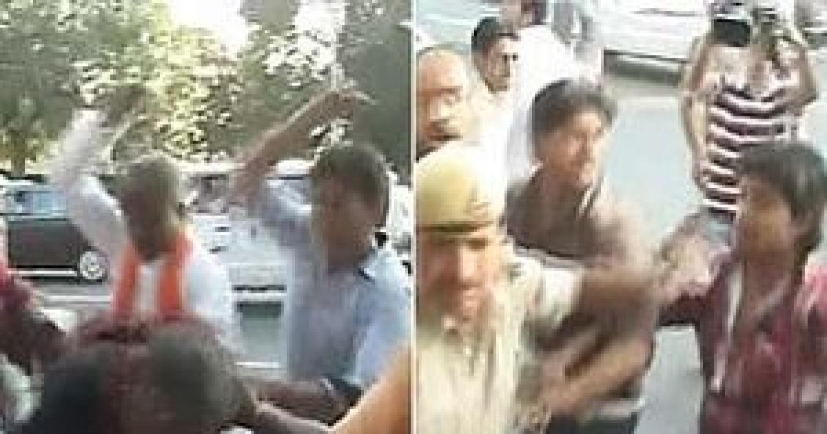 A day after eminent lawyer Prashant Bhushan was assaulted, activists of right wing group Sri Ram Sene beat up Anna Hazare's supporters, including an elderly man who was punched and kicked in the face by a youth, outside the Patiala House courts.