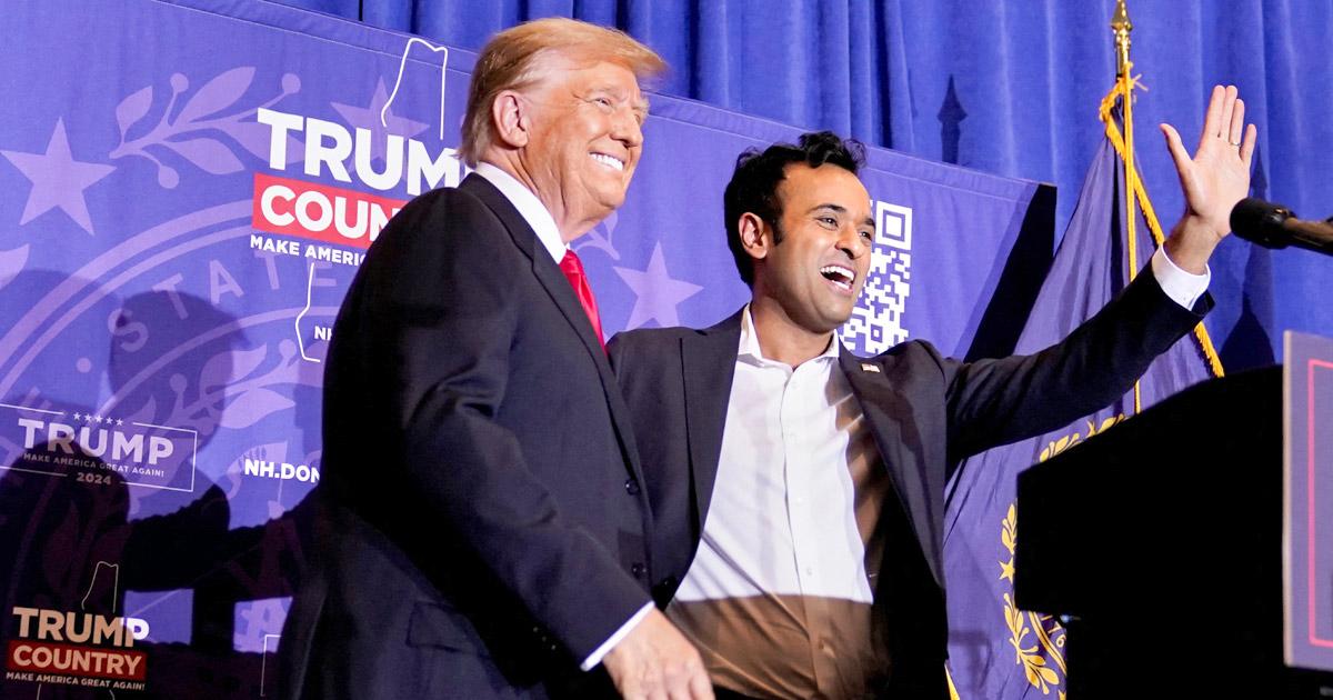 The Indian-American entrepreneur-turned-politician appeared on stage with the real estate businessman and former POTUS at a campaign event at the Atkinson resort and country club in Atkinson, New Hampshire.