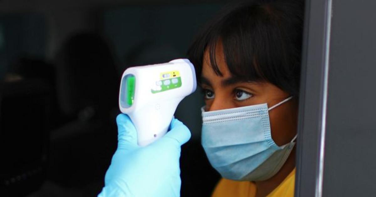 IMAGE: A member of medical staff wearing a protective gloves measures the temperature of a boy during drive-thru coronavirus disease testing at a screening centre in Abu Dhabi, United Arab Emirates. Photograph: Ahmed Jadallah/Reuters