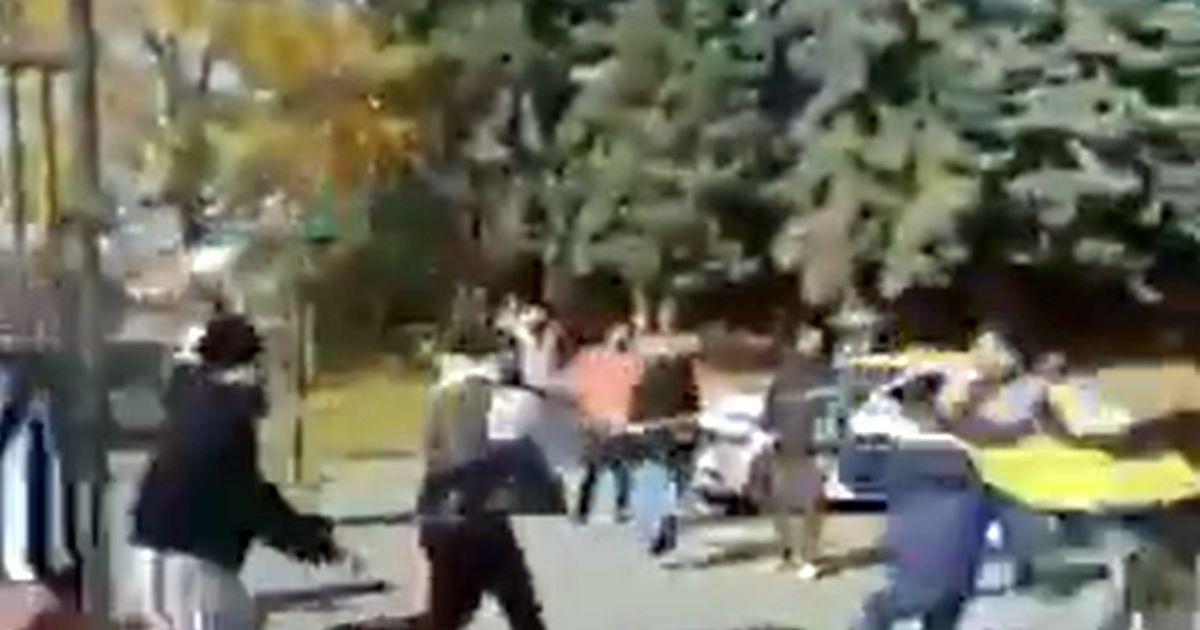 The videos showed fist fights and people striking each other with poles on what appears to be the grounds surrounding the Hindu Sabha Mandir temple, the report added.