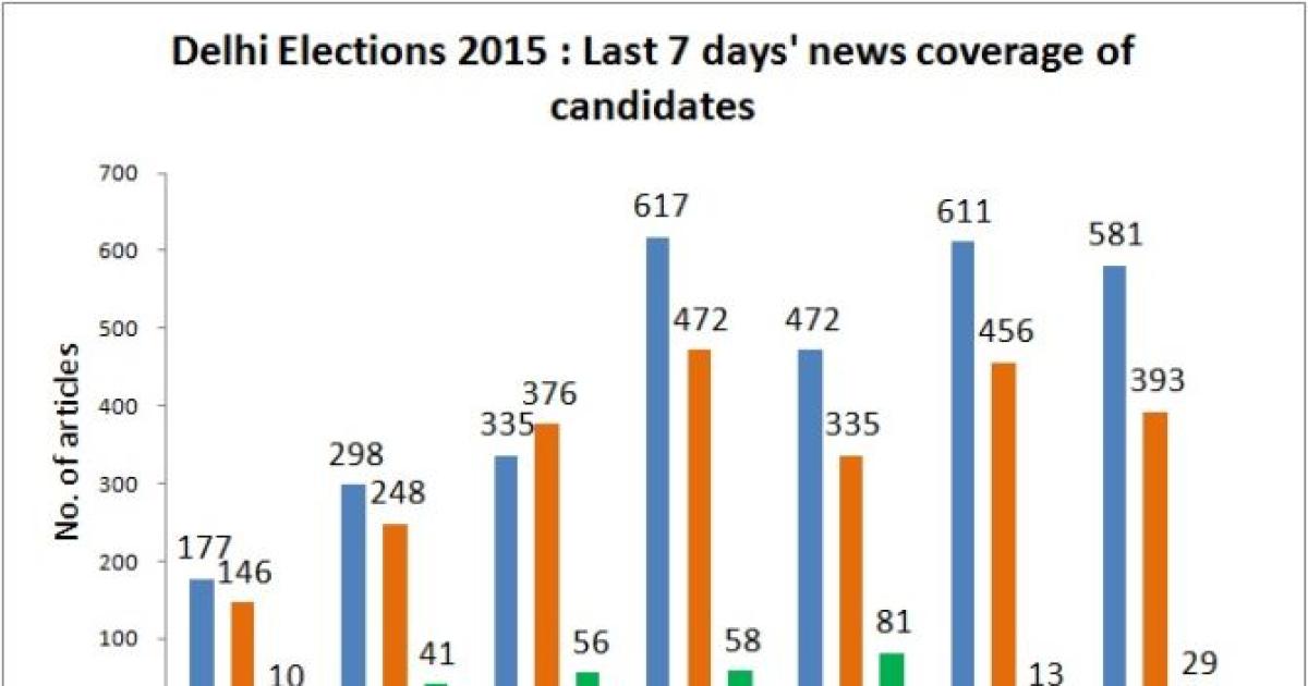 The graphic above shows the number of articles that mentioned each of the candidates hoping to occupy the position of CM in Delhi.