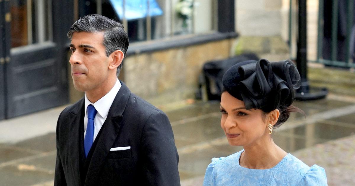 He and his wife Akshata Murty, the daughter of Infosys co-founder Narayana Murthy, led the procession of flag-bearers as the UK's Union Jack flag was carried into the Abbey by a high-ranking Royal Air Force (RAF) cadet.