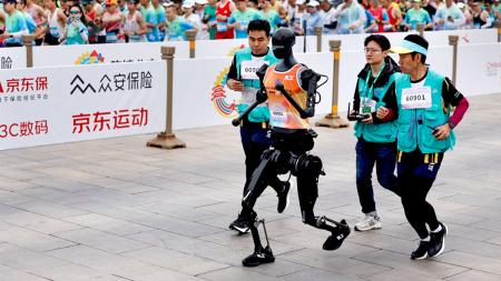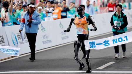 This race featured 21 humanoid robots competing on a 21.1 kilometre course parallel to over 12,000 human runners. ​