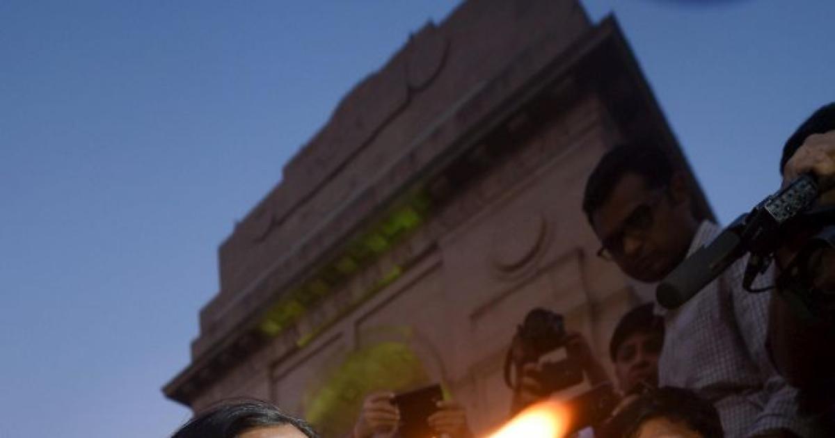 Image: Rohith Vemula’s mother Radhika, along with students, takes part in a candle light march demanding justice for her son, at India Gate in New Delhi. Photograph: Manvender Vashist/PTI