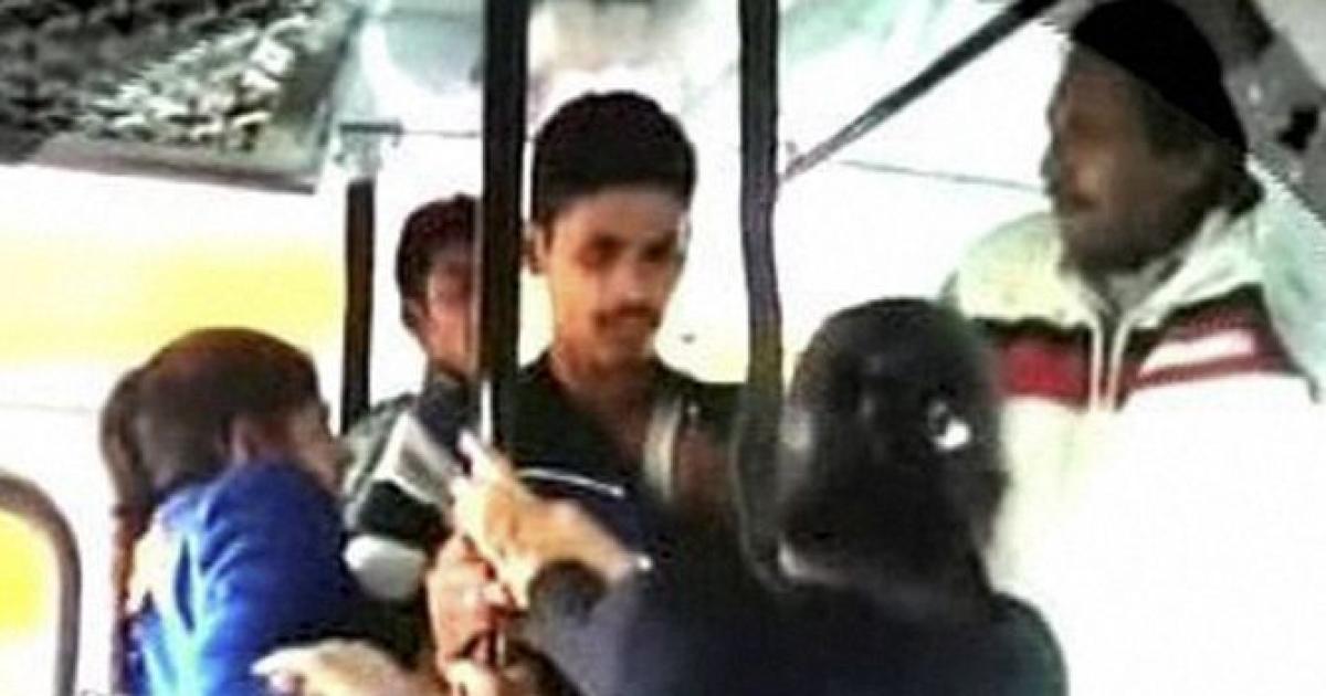 The matter came to light after a woman travelling in the same bus recorded the incident on a mobile phone, police officials said Sunday.
