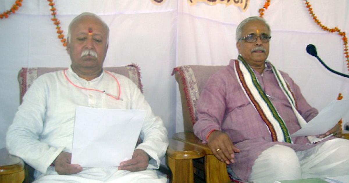 Image: RSS Sarsanghchalak Mohan Bhagwat, left, with senior RSS leader Suresh Bhaiyaji Joshi. Photograph: Sandeep Pal