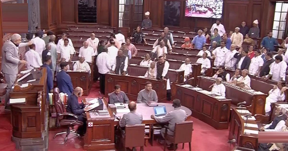 Amid the continued uproar by opposition members, Chairman Jagdeep Dhankhar adjourned the House till 2 pm.