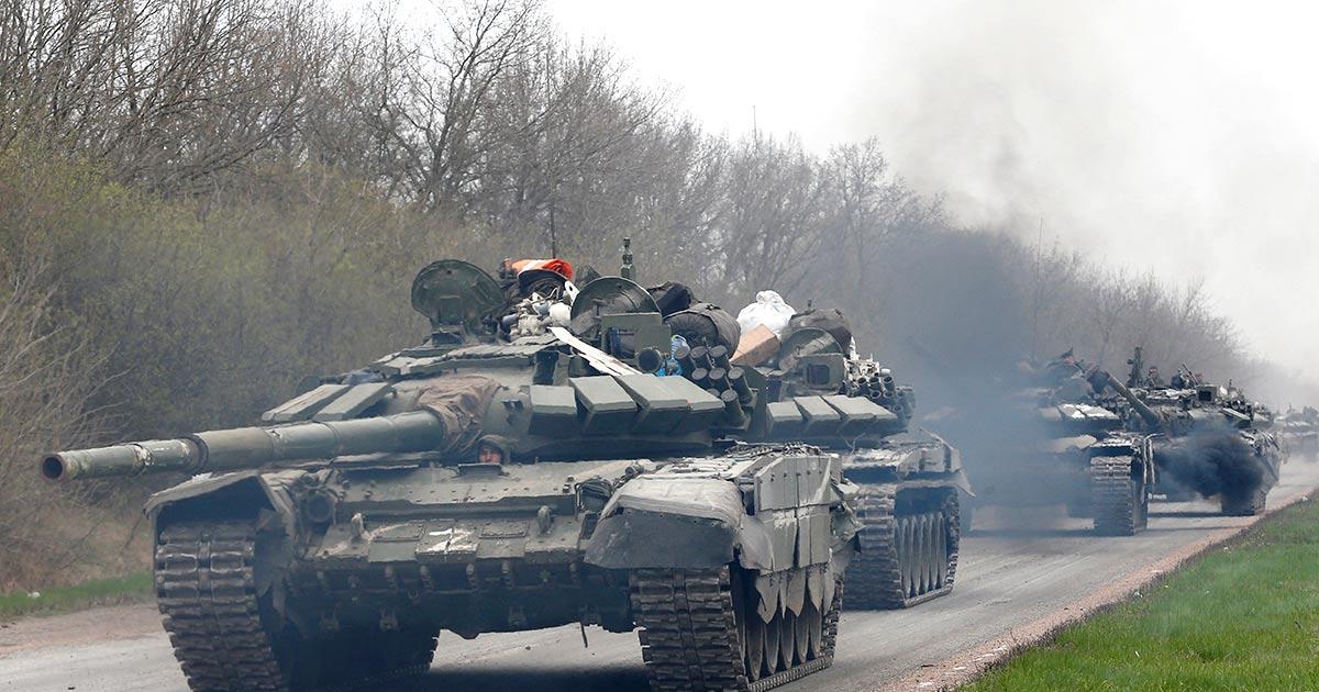 IMAGE: Pro-Russian tanks seen near Mariupol. Photograph: Alexander Ermochenko/Reuters