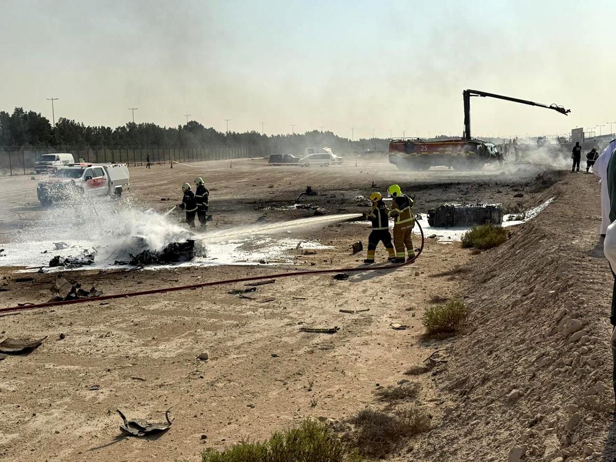 Black smoke billowed over the Al Maktoum International Airport at Dubai World Central, as horrified spectators, including women and children, seated at a grandstand area behind a fenced airstrip, watched in shock.