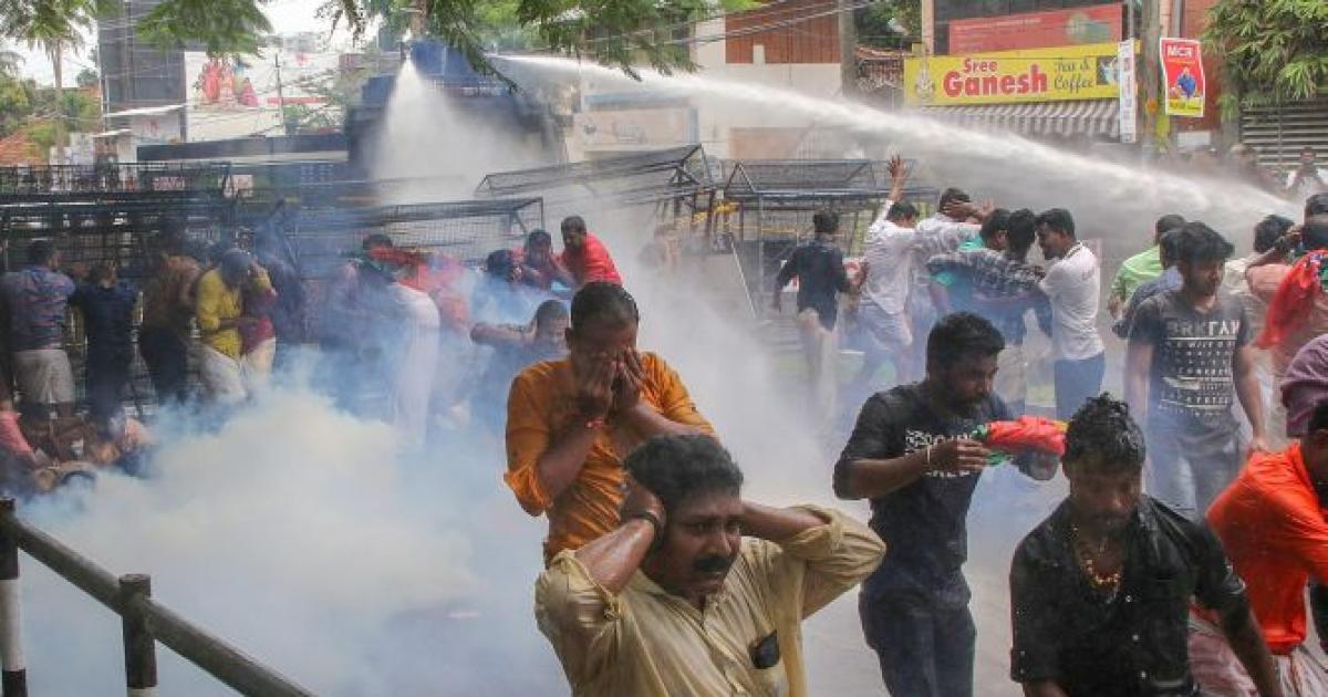 With protests over the Sabarimala issue intensifying, police on Thursday used water canons and tear gas shells to disperse Bharatiya Janata Yuva Morcha members, who tried to barge into the official residence of Kerala Devaswom Minister Kadakampally Surendran Thiruvananthapuram.