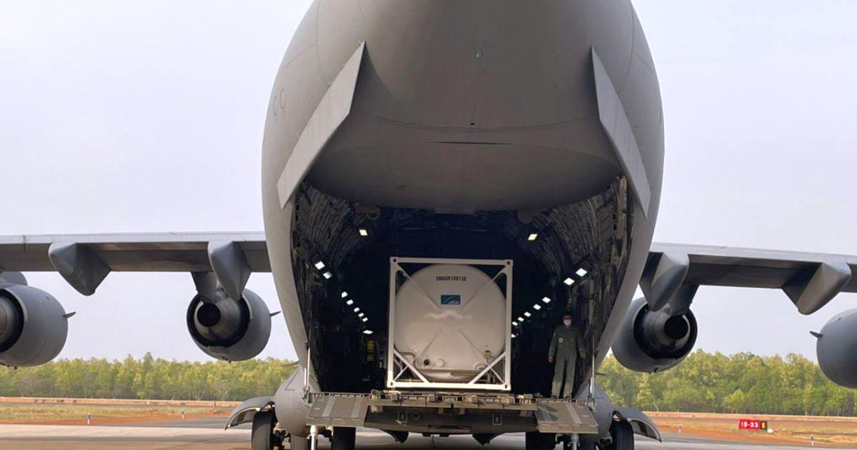 The Indian Air Force on Saturday brought four cryogenic tanks, to be used for transporting oxygen, from Singapore. The containers were airlifted from Singapore by C17 heavy-lift aircraft of the IAF.
