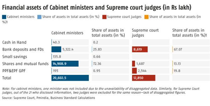 Based on data analysed by Business Standard, Supreme Court judges tend to favour safer, low-risk instruments, while ministers display a larger appetite for market-based assets.