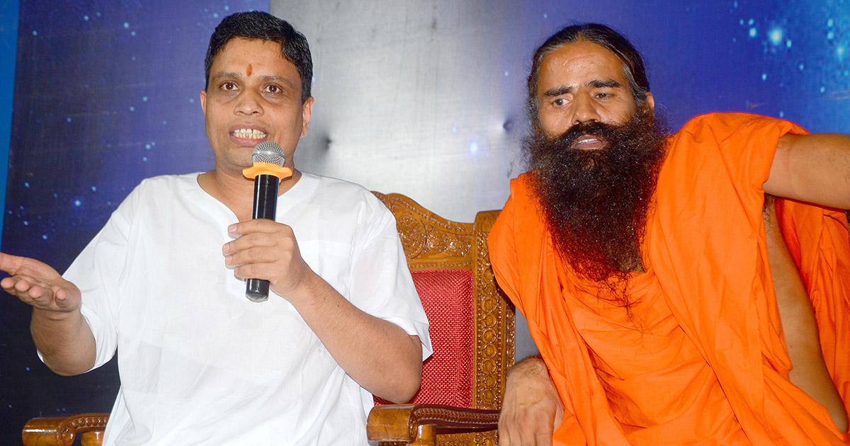 IMAGE: Yoga guru Ramdev and managing director of Patanjali Ayurved Acharya Balkrishna. Photograph: ANI Photo