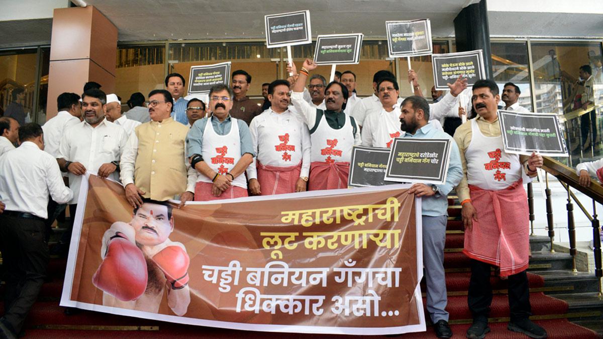 On July 16, 2025, legislators of the opposition Maha Vikas Aghadi staged a 'banian towel' protest outside the Vidhan Bhavan to condemn the assault of an MLA hostel canteen employee by Shiv Sena MLA Sanjay Gaikwad.