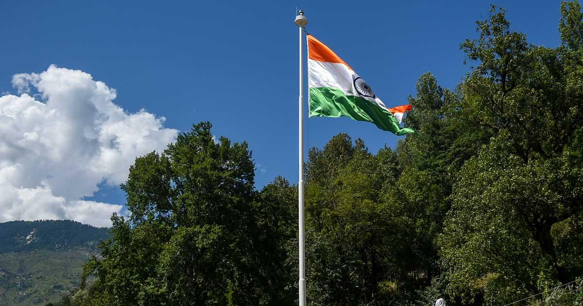 IMAGE: A school girl walks past a flag-post in the Keran sector of the border district of Kupwara, north Kashmir. All Photographs: S Irfan/PTI Photo