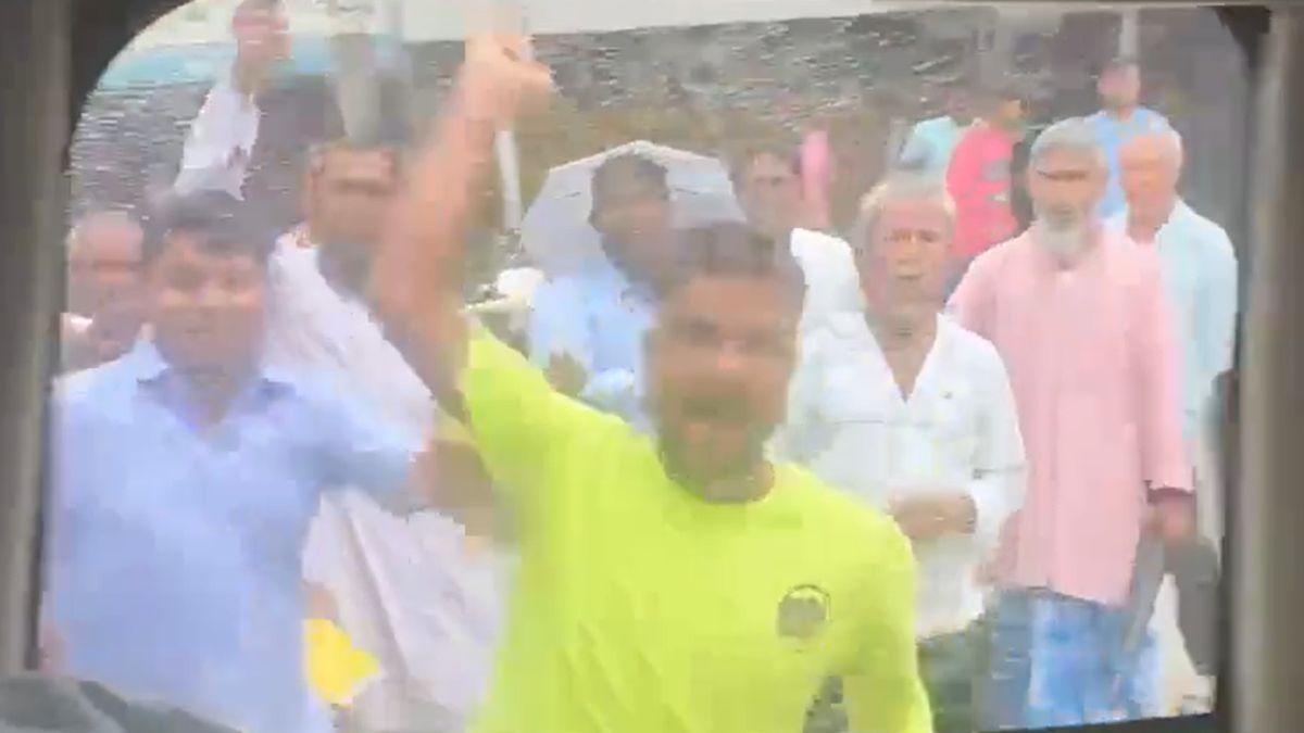 A police escort vehicle was also vandalised, with its window panes shattered, prompting the BJP to call it a 'murderous attempt' carried out in full public view, allegedly with police inaction.