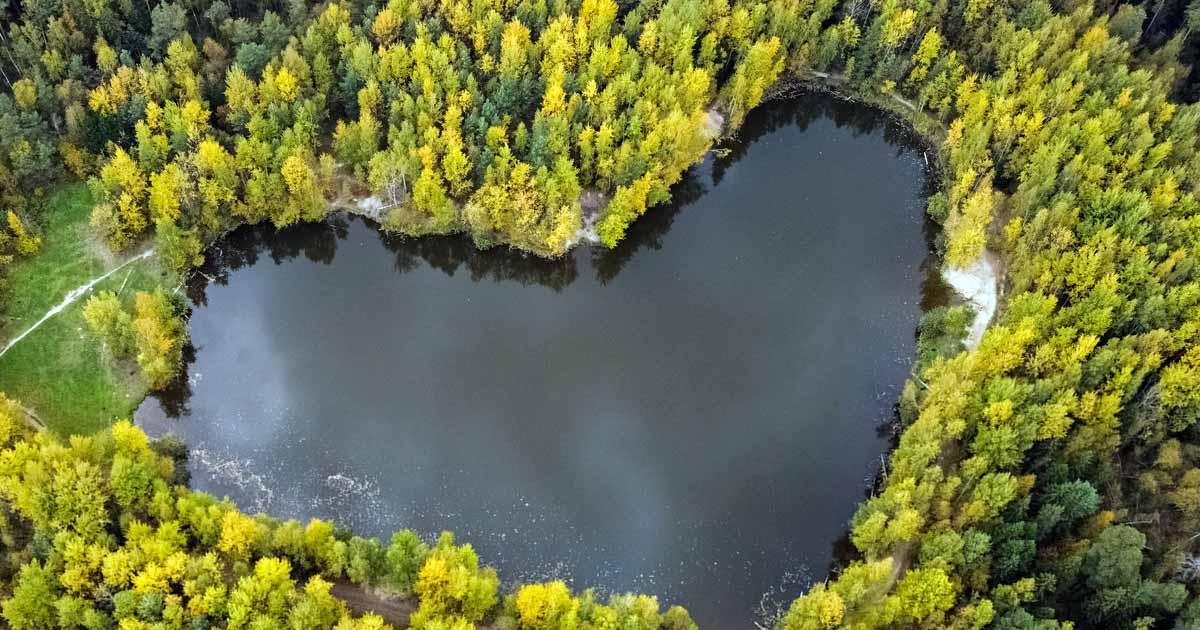 IMAGE: A lake in a shape of a heart surrounded by autumn-coloured trees outside Balashikha, Moscow. Photograph: Maxim Shemetov/Reuters