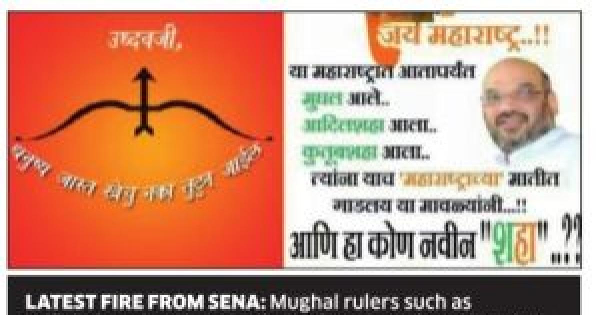 The poster says ‘among those buried in Maharashtra’s soil by Chhatrapati Shivaji’s troops are Mughals, Adilshah (ruler of Bijapur who sent Afzal Khan to capture Chhatrapati Shivaji, in vain), and Kutubshah. So who is this new Shah?’ – a reference to the BJP president who, the Sena believes, is behind its alliance partner driving a hard bargain in Maharashtra.