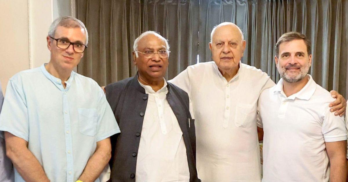 Congress leaders, including party's general secretary organisation, K C Venugopal, Salman Khurshid, and J-K in-charge Bharat Solanki, arrived at the residence of NC president Farooq Abdullah and vice president Omar Abdullah in Gupkar area in Srinagar, to hold talks over seat sharing, leaders in both the parties said.