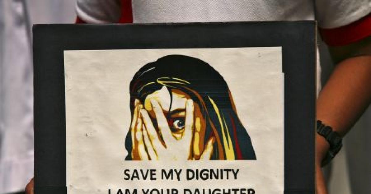 Image: A schoolgirl holds a placard during an anti-rape protest demonstration in Jammu