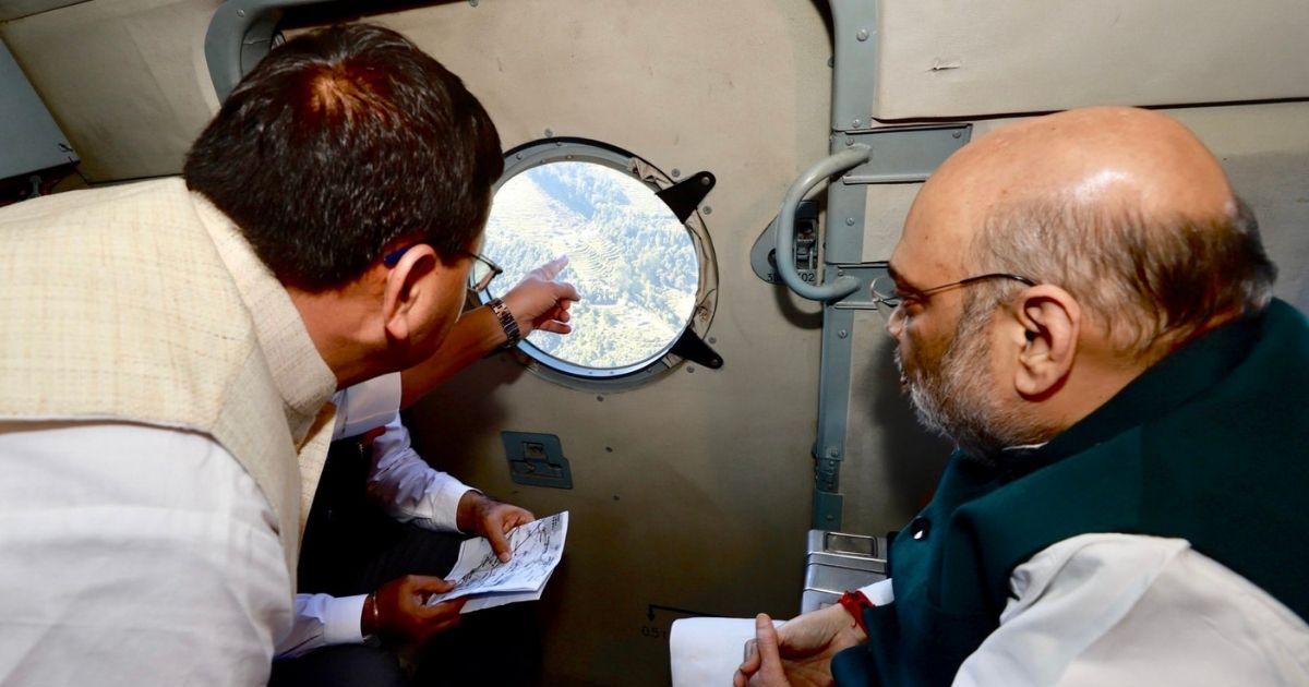 Union Home Minister Amit Shah on Thursday conducted an aerial survey of Uttarakhand's rain-ravaged areas to asses the damage that the state government has pegged at Rs 7,000 crore.