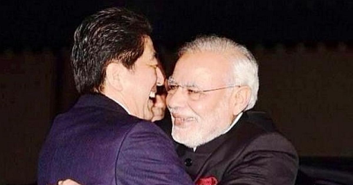 Image: Prime Minister Narendra Modi embraces his Japanese counterpart Shinzo Abe