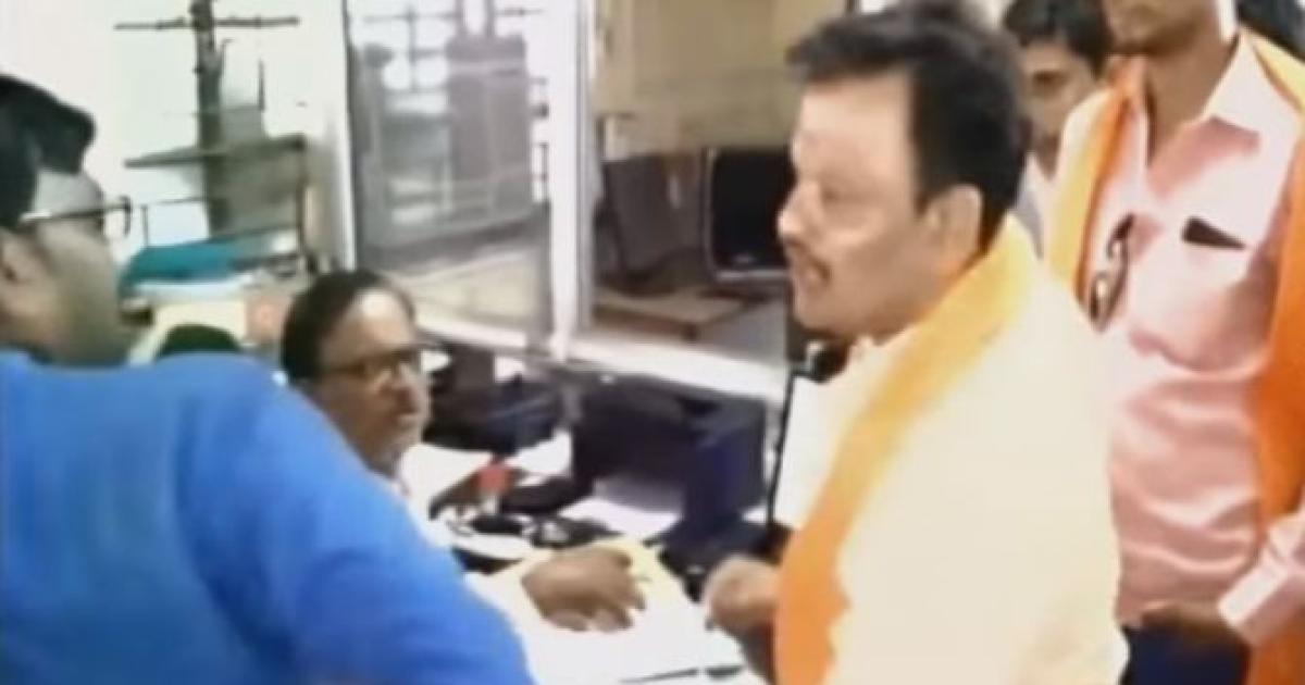 The incident apparently took place in Yavatmal district of Maharashtra on Wednesday. It shows the Sena worker Pravin Shinde, a member of the Zila Parishad, slapping the bank employee after an altercation at a local branch of the bank.
