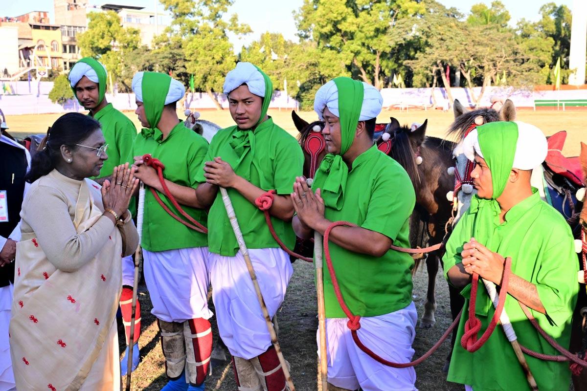 IMAGE: President Murmu also watched a polo match at the historic Mapal Kangjeibung in Imphal. Photograph: Office of Press Secretary to the President/ANI Photo