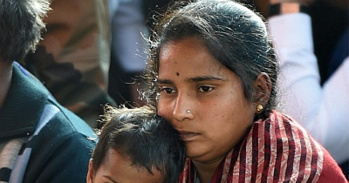 Image: Mahadevi, wife of Lance Naik Hanumanthappa Koppad with her daughter. Photograph: PTI Photo