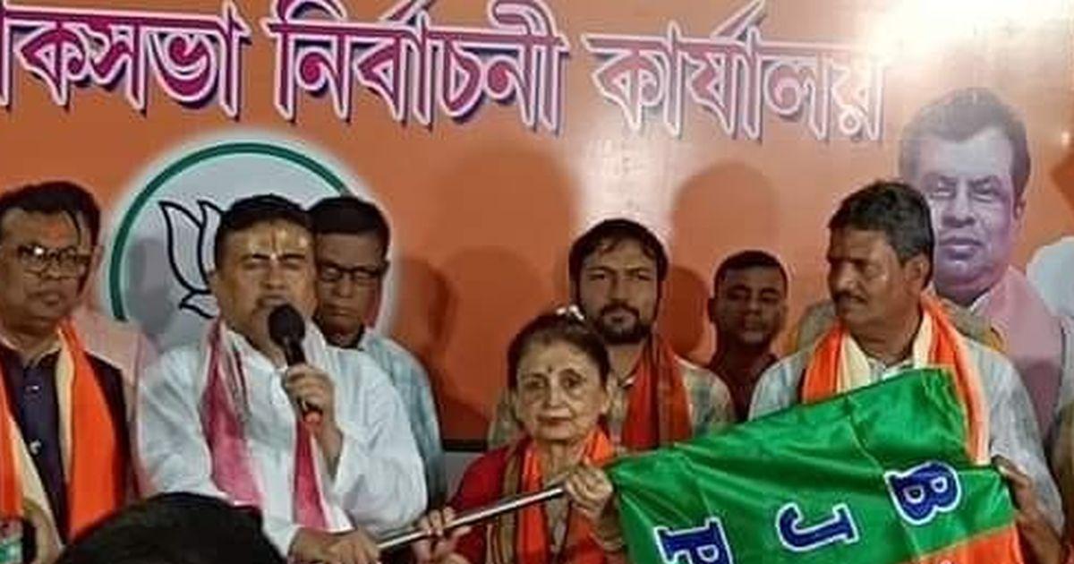 IMAGE: 'Rajmata' Amrita Roy had joined the BJP on March 20, 2024, in presence of West Bengal Leader of Opposition Suvendu Adhikari. Photograph: Courtesy @BJP4Bengal on X