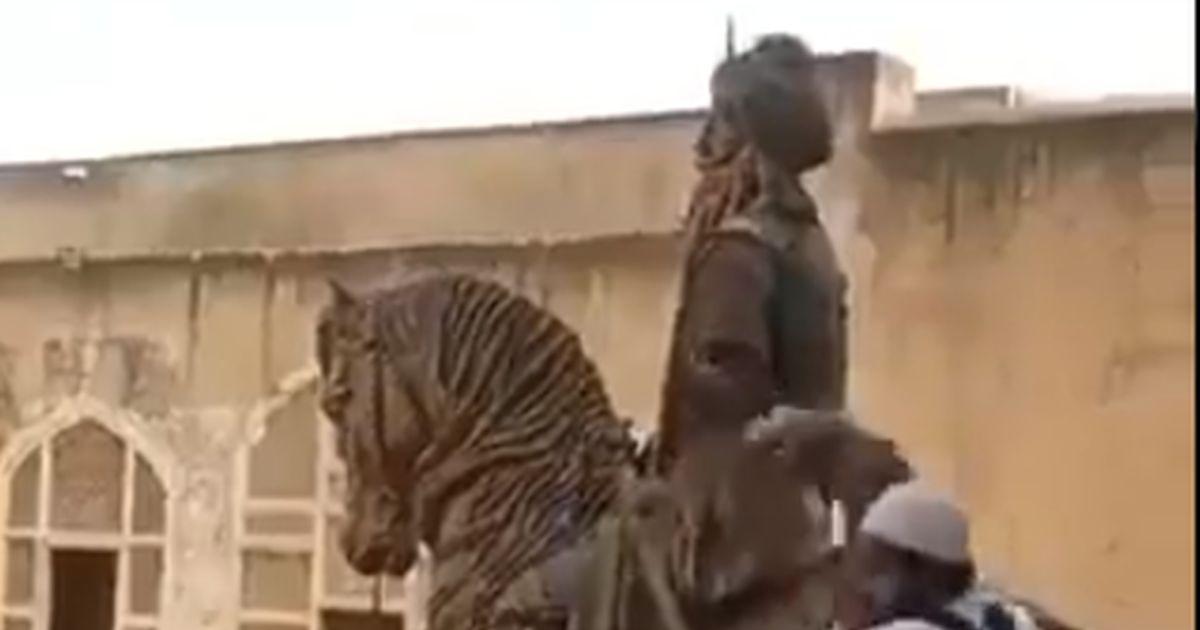 As per the video that has gone viral, the accused could be seen chanting slogans, breaking the arm of the statue and dismantling Singh's bust from the horse and throwing it on ground before being pulled by another man.