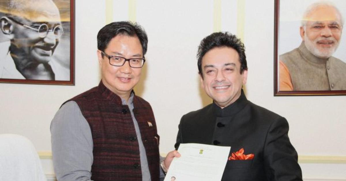 A smiling Sami also sang his famous song -- 'Teri oonchi shaan hai maula...Mujhko bhi to lift kara de' -- after he received a citizenship certificate from Minister of State for Home Kiren Rijiju at North Block in New Delhi in the presence of his wife Roya.