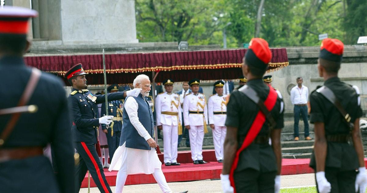Prime Minister Narendra Modi was on Saturday, April 5, 2025 accorded a grand ceremonial welcome at the historic Independence Square in Colombo, perhaps the first such honour given to a foreign leader.