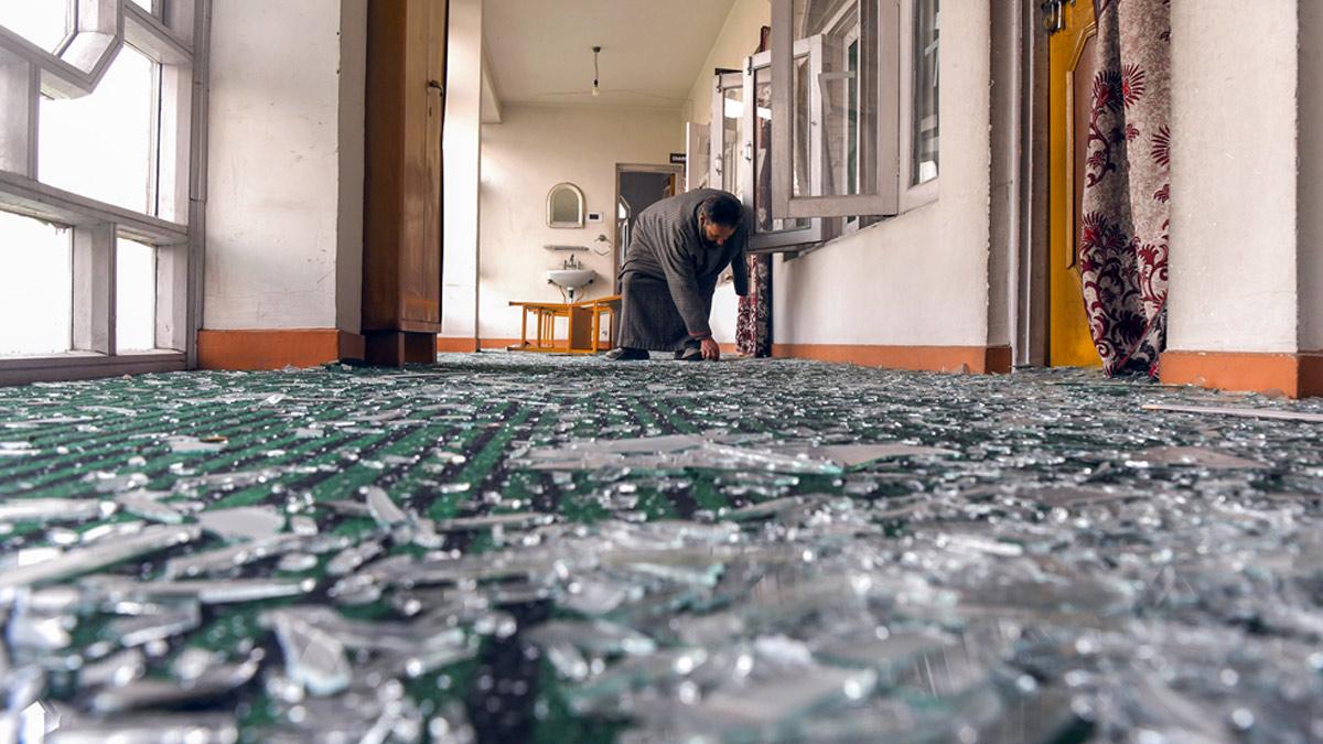 IMAGE: Shattered glass due to the impact of the blast. Photograph: ANI Photo