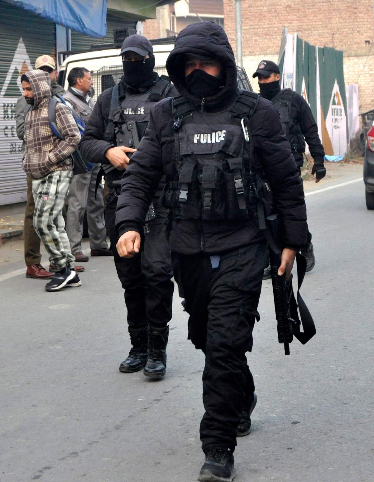 Jammu and Kashmir Police Special Operations Group personnel on the way to the Nowgam police station, here and below. Photograph: Umar Ganie for Rediff
