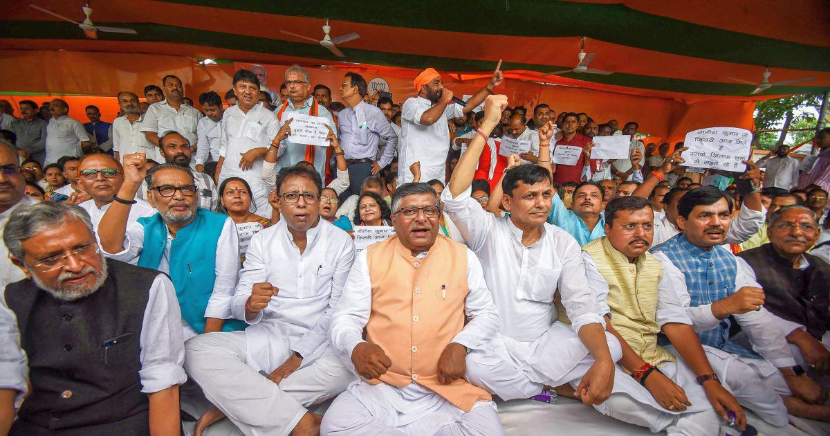 The 'Maha Dharna' (massive demonstration) staged in front of the party office at Birchand Patel Marg was attended by all BJP MPs and MLAs from Bihar who vowed to “expose” the 71 years old Janata Dal-United leader through agitations scheduled at district and block levels later this week.
